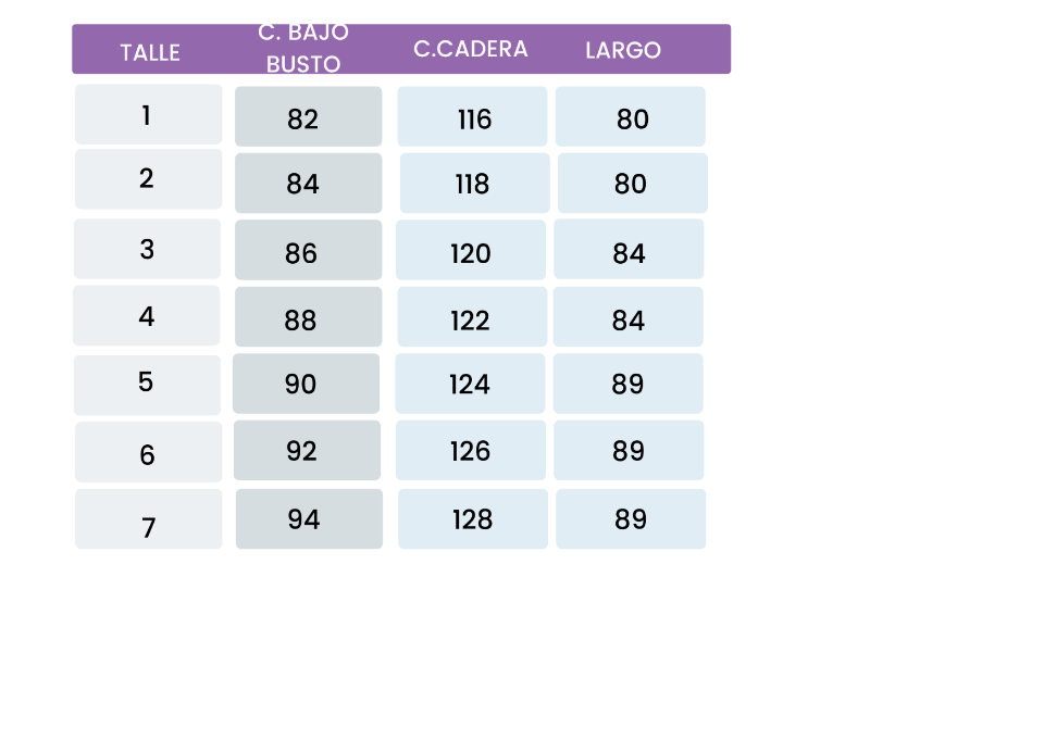 Tener en cuenta que el corte del vestido es al cuerpo hasta el bajo busto, luego tiene una amplitud de corte evasé.